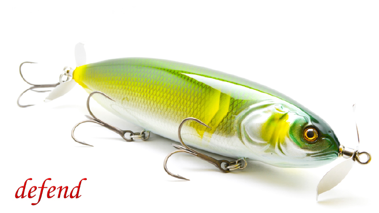 特にビッグベイトとの相性は抜群で、その泳ぎはダイナミックに悠然と泳ぐ本物の大型ベイトそのものといえ、膨大でトルクフルに撹拌水流を発生させます。